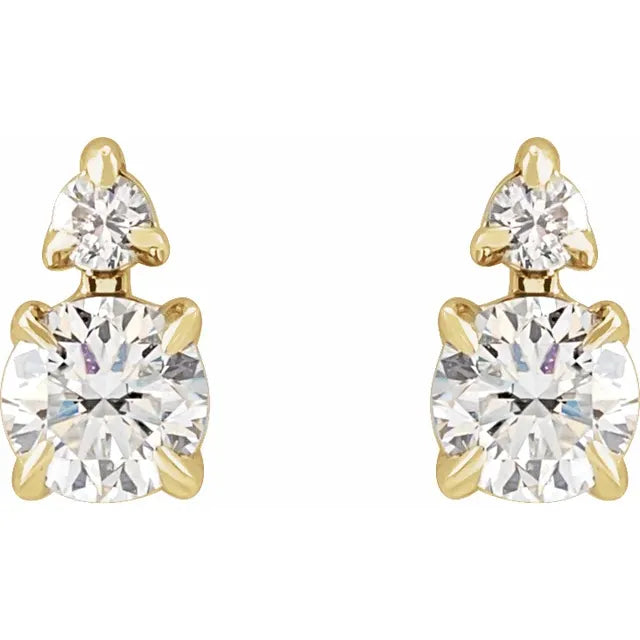 Introducing our Round Stack Stud Studs, the perfect addition to your luxurious collection. Made with 1/3 carats in total weight of round diamonds set in 14k yellow gold, this pair of earrings is a timeless and elegant choice.