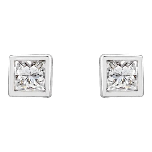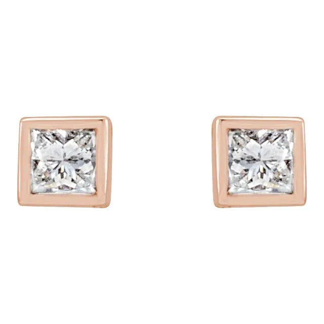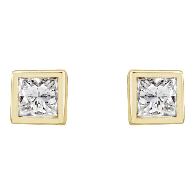 Indulge in the allure of these exquisite 1/6 carat total weight 14k gold bezel set studs, an essential addition to your collection. These studs are the perfect little gift to remind someone that you are thinking of them or the perfect addition to your ear-scape!